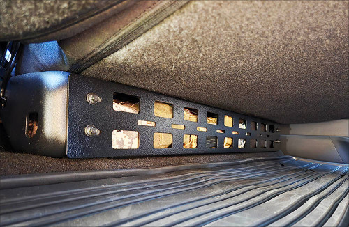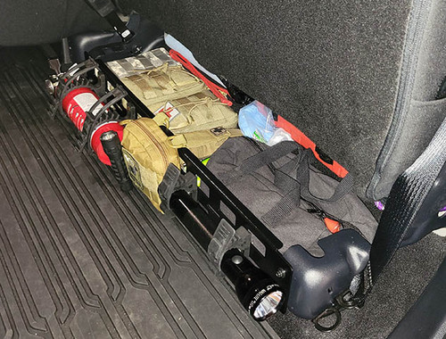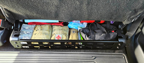 Ford Super Duty Rear seat Molle storage solution, The area Ford gives us for storage is small, so make the best of it by attaching Molle pouches and quick access tools to the front, all can be done with Quickfist mounting clamps and slots for bolting to.